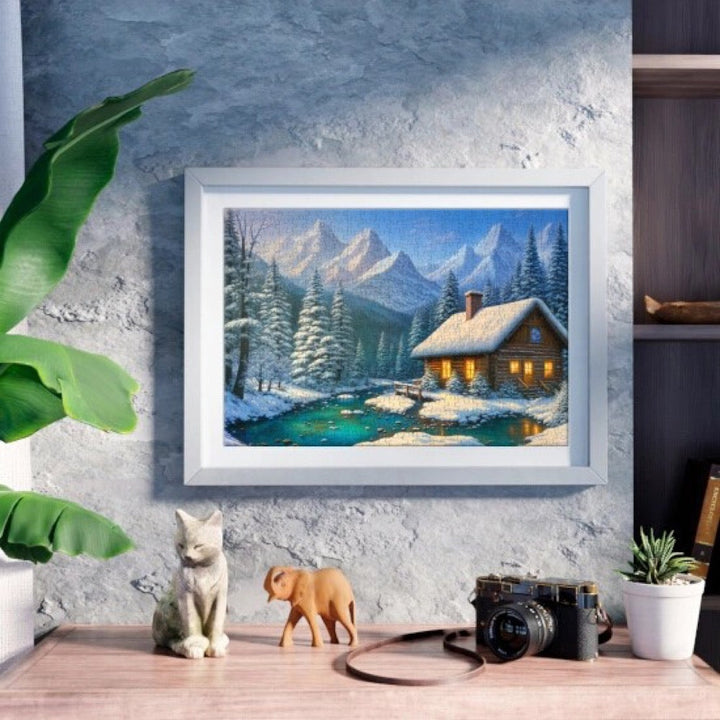 Winter Whispers is meant to have a very cozy feel. There is a little cabin hidden among the mountains. A new blanket of snow covering the ground is pure and delicate. Lights on inside invite you to come in and warm up by the fire, so let's get there solving this beautiful puzzle.
