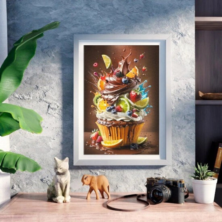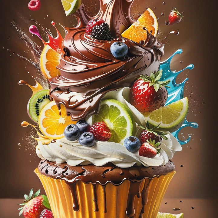 Doesn't that cupcake look good? We can guarantee, it's the tastiest muffin you’ve ever seen! This amazingly rich chocolate cupcake picture is for the most daring chocolate lovers. Moist chocolate cupcake filled with layers of chocolate mousse and berries on top can inspire you to your own creations of culinary delights. Puzzle with such delicious cupcake can be a perfect gift to decorate kitchen wall or dining room space. Enjoy your meal!