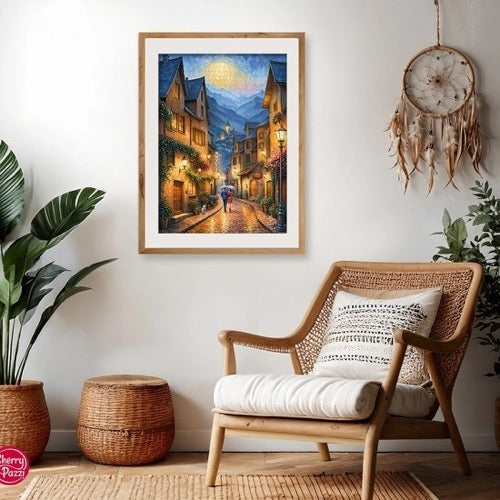 Gentle rain glistens on cobblestone streets as a two souls wander hand in hand, framed by charming houses. A romantic tribute to stillness, connection, poetry and the beauty of everyday moments. Nostalgia fill the air. It is a delightful journey into a world of warmth and whimsy.