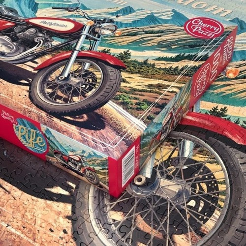 Discover the soul of the open road with a classic retro-style motorbike. The painting brings vintage vibes and timeless design, transforming it into a rolling piece of art. This is a pure spirit of freedom and individuality. Inspired by the past, designed for today. The timeless spirit of adventure - the puzzle deserves to stand out.